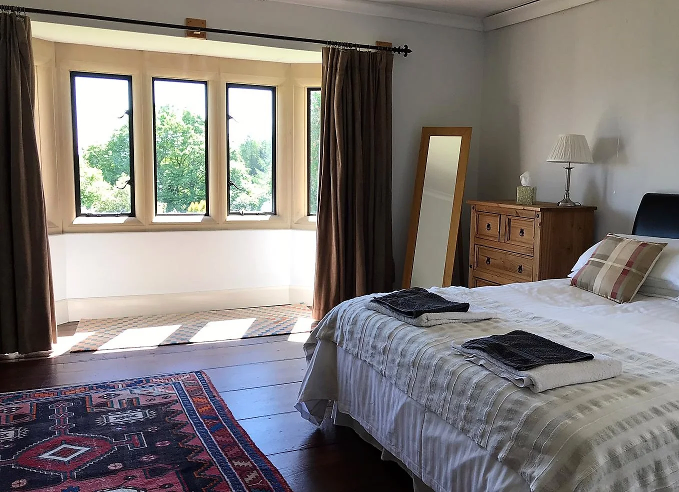Bedroom 7 is a large double room on the ground floor. With its own patio doors opening directly onto the garden and sweeping views across the Shropshire plains, this room is perfect for guests who want to be as close to the garden as possible! Please note, whilst Bedroom 7 is well suited for disabled guests, there is no ground-floor shower or bath (only a loo).